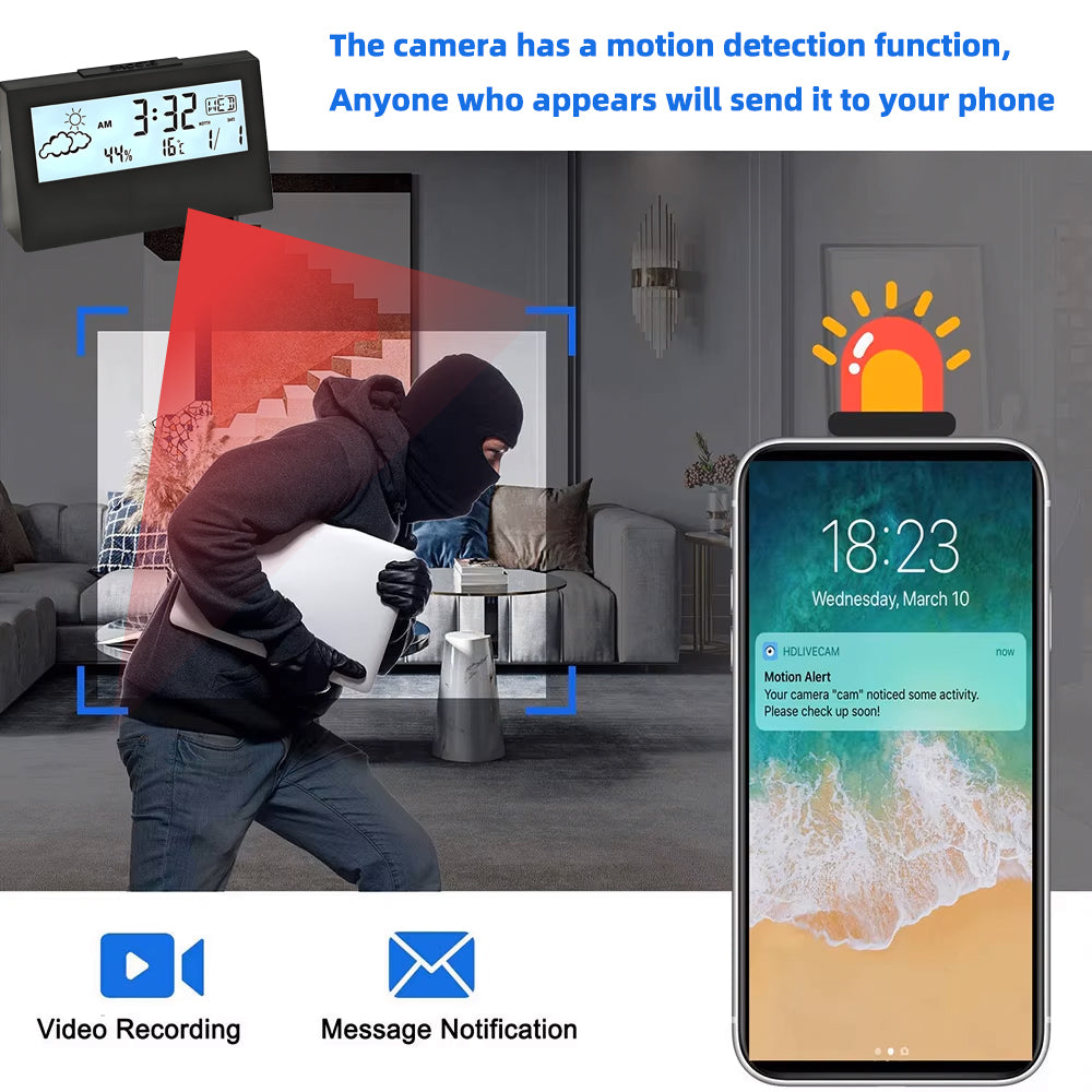 Non traditional design: The working principle of this mini camera looks like a true classic alarm clock, and even when fully displayed, it will not cause any problems or doubts. Nothing can give up modern and elegant design, just place it in any room of the house or office, bedroom, kitchen, living room, bedside table, coffee table or console!