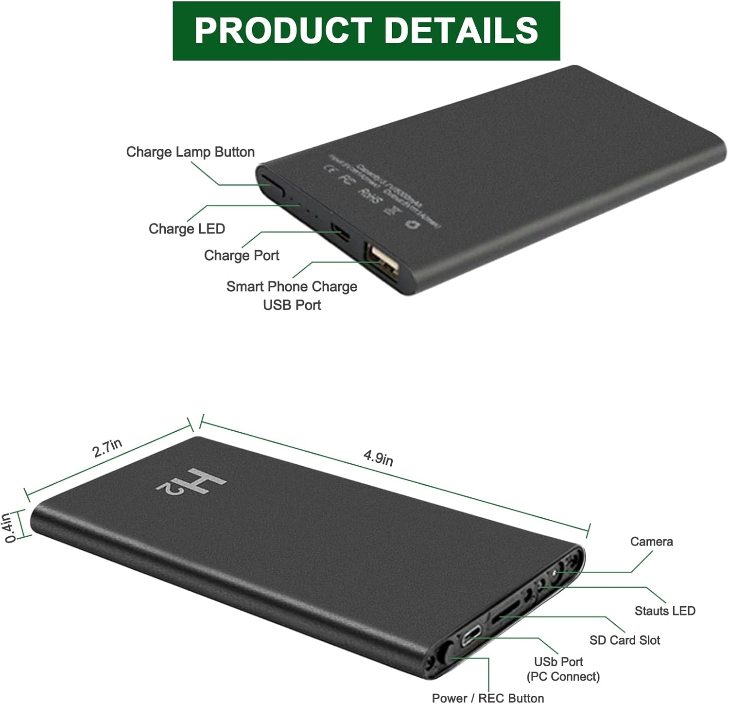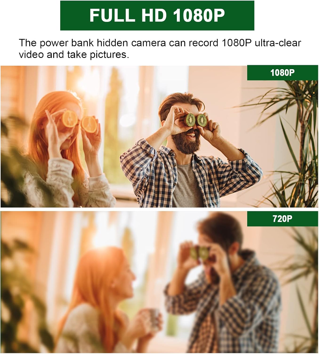 H2 Power Bank Hidden Camera, 5000mAh Spy Camera, Nanny Cam, Portable Mini Cam with Night Vision, Motion Detection for Office Home Surveillance, No WiFi Function